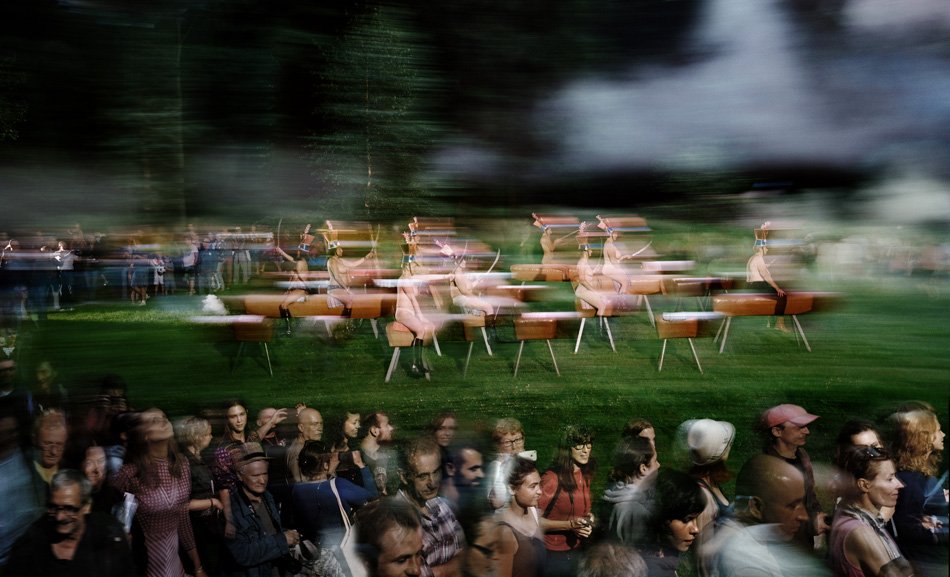 - sesja fotograficzna w Muzeum Sztuki (1999); pastiszowanie serigrafii „Śniadania na trawie” Alaina Jacqueta