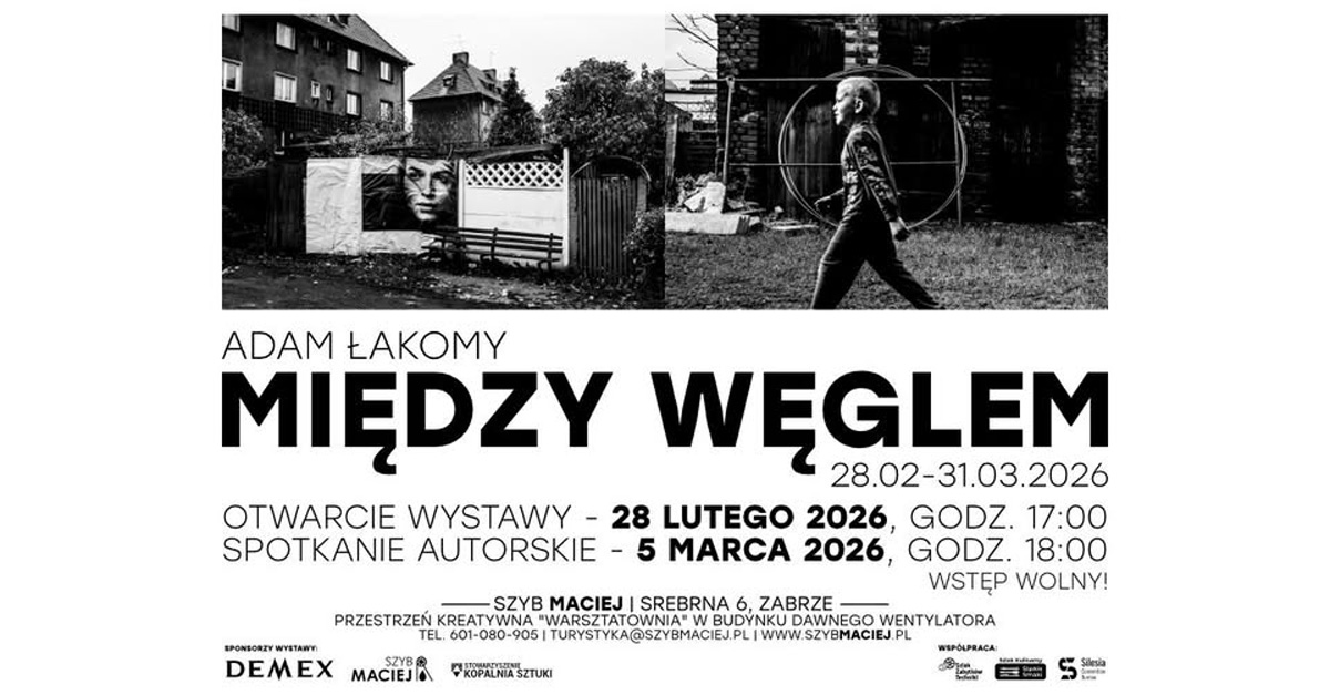 Szyb Maciej w Zabrzu zaprasza od 28 lutego 2026 roku, do Przestrzeni kreatywnej "Warsztatownia" w budynku dawnego wentylatorana wernisaż wystawy fotografii "Między węglem" której autorem jest Adam Łakomy. Spotkanie autorskie przewidziano czwartek 5 marca 2026 roku, o godz. 18.00. Wstęp wolny.