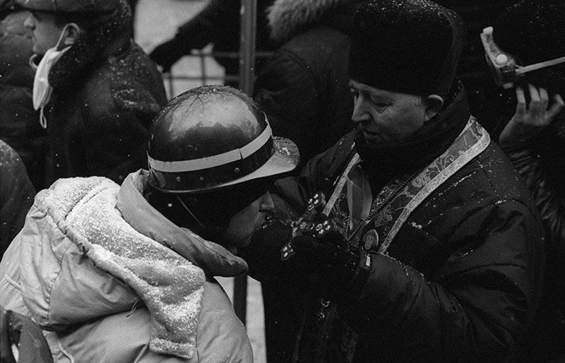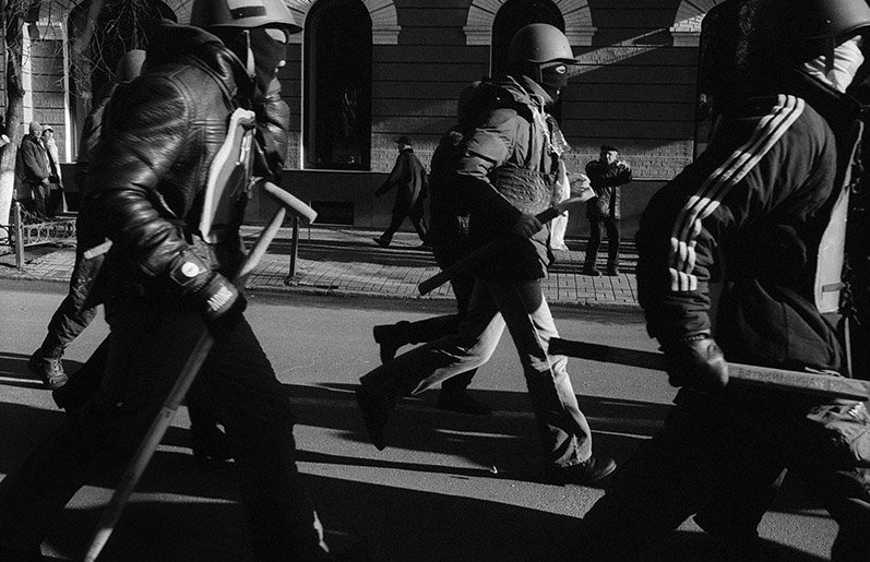 Autor współpracuje z najważniejszymi światowymi agencjami fotograficznymi, jest zaprzyjaźniony z rodziną fotoreporterów wojennych. Jego relacja z kijowskiego Majdanu (autor mieszka w Kijowie) posiada tragiczny urok obrazów batalistycznych. Noc, ostre światło są czynnikami potęgującymi w naszej psychice bezmiar grozy bratobójczej walki. Patrzymy w oczy bojowników i w oczy ich potencjalnych zabójców. Człowiek człowiekowi gotuje ten LOS.