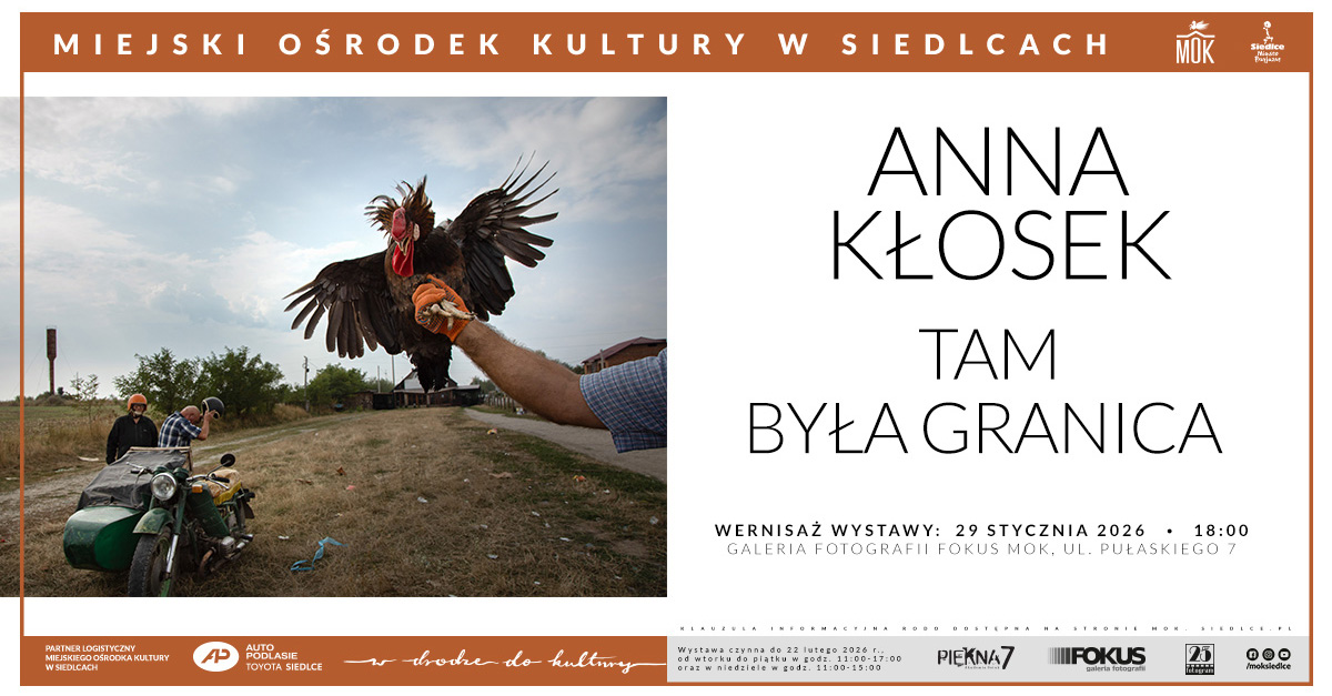Miejski Ośrodek Kultury w Siedlcach zaprasza 29 stycznia 2026 roku, o godz. 18.00 do Galerii Fotografii Fokus na wernisaż wystawy fotografii Anny Kłosek "Tam była granica". Wystawa potrwa do 22 lutego 2026 roku. Wstęp wolny.