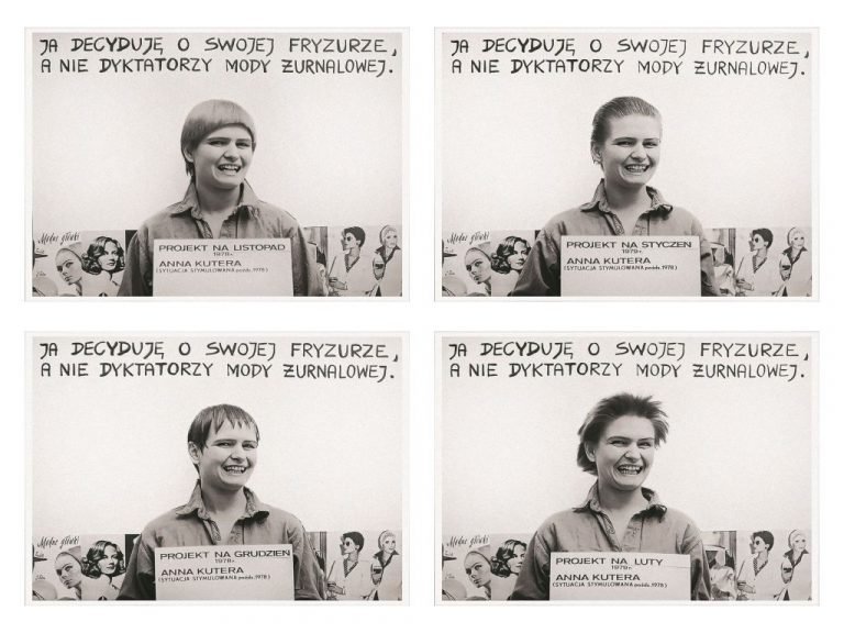 "Spojrzenia" to tytuł pierwszej z serii indywidualnych wystaw jakie Anna Kutera zamierza zrealizować w 2022 roku, podsumowując tym 50 lat swojej aktywności artystycznej. W wybranych do tej wystawy dziełach dominującym motywem są autoportrety oraz przedstawienia innych osób w relacjach wobec otoczenia i kamery. Proste rejestracje twarzy, sytuacji spotkań i wymiany spojrzeń, mimo pozorów oczywistości mają potencjał wielu warstw znaczeniowych, które zazwyczaj ignorujemy w potocznym funkcjonowaniu. Szczególną rolę odgrywają tu autoportrety (...). Konkretnym wizerunkom artystki, prezentującej się jako osoba zdecydowana i dynamiczna, towarzyszą często krótkie teksty podkreślające dążenie do uchwycenia, przez siebie lub obserwatora, zasadniczej prawdy tej sytuacji. Pojawiająca się niepewność i brak ostatecznej odpowiedzi nie podminowują jednak jej optymizmu opartego na akceptacji własnej osoby. Dzięki fotograficznym autoportretom autorka może sama spojrzeć sobie w oczy, a także poznawać siebie w oczach innych. Po wielu latach takich praktyk może też pogłębiać tę wiedzę zestawiając etapy upływu czasu. W jednym z cykli dokonuje interwencji na swoich autoportretach z różnych dekad życia poprzez wycinanie i dekompozycję ich fragmentów, według podpowiedzi własnej pamięci. Wydaje się tu nawiązywać do tej filozoficznej koncepcji, która traktuje tożsamość osobową jako tożsamość czasową, co zakłada też jej narracyjny charakter. Jak się jednak okazuje stworzenie autentycznej i spójnej tożsamościowej narracji nie jest proste. Pamięć często nas zawodzi i ujawnia skłonności do autokreacyjnych przeinaczeń.