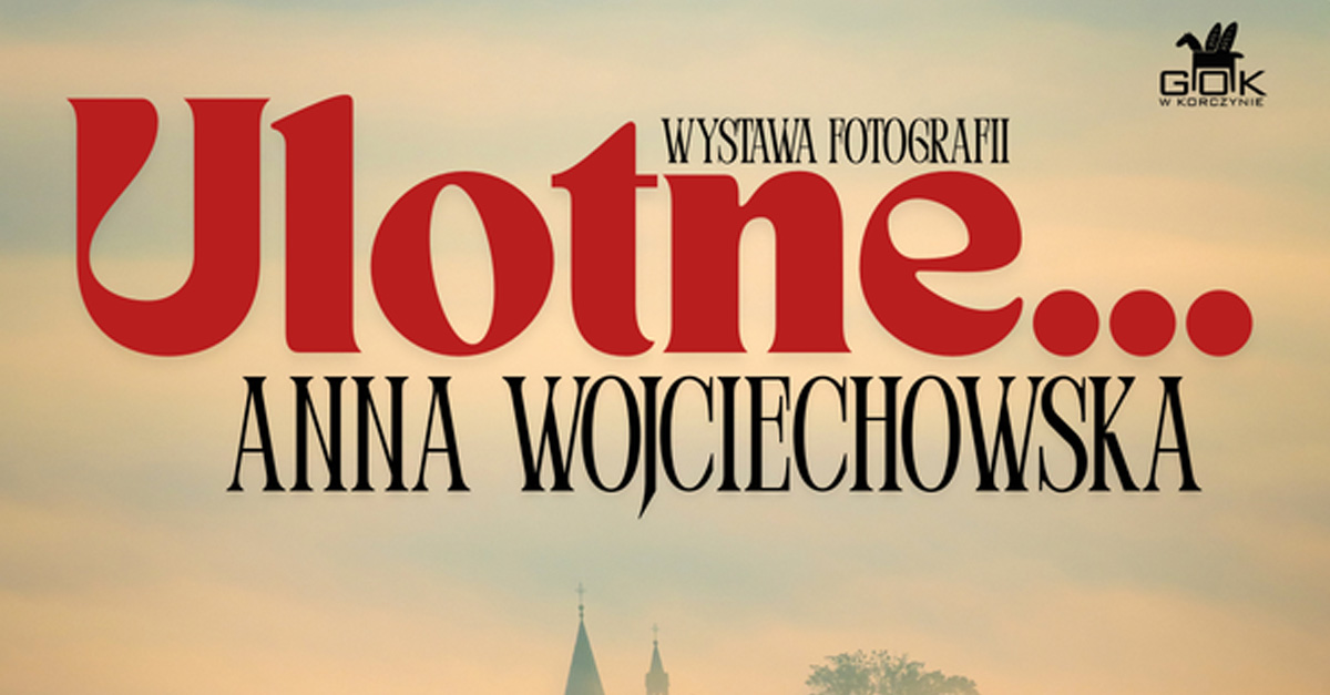 Gminny Ośrodek Kultury w Korczynie zaprasza 10 kwietnia 2026 roku, o godz. 18.00 do Galerii Dworu Szeptyckich na wernisaż wystawy fotografii Anny Wojciechowskiej zatytułowaną "Ulotne…". Wystawa potrwa do 29 maja 2026 roku. Wstęp wolny.