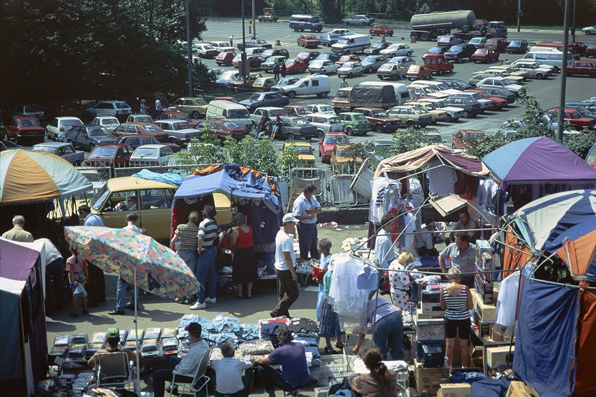 Fotografia opowiada lata 90. i Warszawę tamtego czasu jak żadne inne medium. Na zdjęciach, amatorskich i zawodowych, utrwalono dekadę transformacji i jej wpływ na przestrzeń miasta. Wystawa Błysk, mat, kolor w Muzeum Warszawy sięga do archiwów profesjonalnych fotografów, fotoreporterek, artystów, ale i do prywatnych rodzinnych albumów. Fotografia analogowa była wtedy powszechnym sposobem zapisu rzeczywistości. A rzeczywistość zmieniała się i zaskakiwała. Przestrzenią miasta zawładnęły kolorowe reklamy, wyrosły szklane wysokościowce, na ulicach obywał się wolny handel, szły nimi protesty i strajki. Jak czas gwałtownych przemian uchwyciła fotografia? Jak widziano wtedy miasto? W jakim stopniu pamięć o latach 90. opiera się na fotografii?
