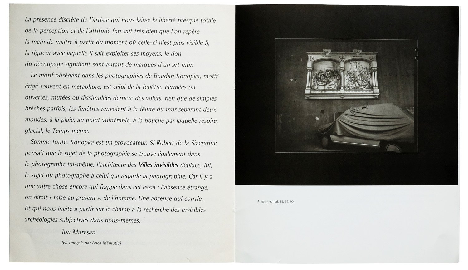Katalog wystawy fotografii "Orase invizibile" której autorem Bogdan Konopka, który został wydany przy okazji wystawy artysty w Centre Culturel Français w Cluj w Rumunii w maju 2000 roku.