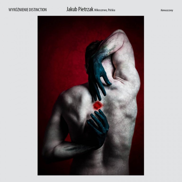 Ostatnie wyróżnienie regulaminowe otrzymał Jakub Pietrzak za fotografię Namaszczony. Autor zaprezentował wymowną pracę, która w bezpośredni sposób ilustruje problem pandemii, choć nie wiemy jaki zamiar towarzyszył jej powstaniu. Realizacja może służyć też np. jako plakat do walki z Covid 19 gdyż przedstawia specyficzny kadr na temat próby walki, a może zwykłej bezsilności wobec pandemii.
