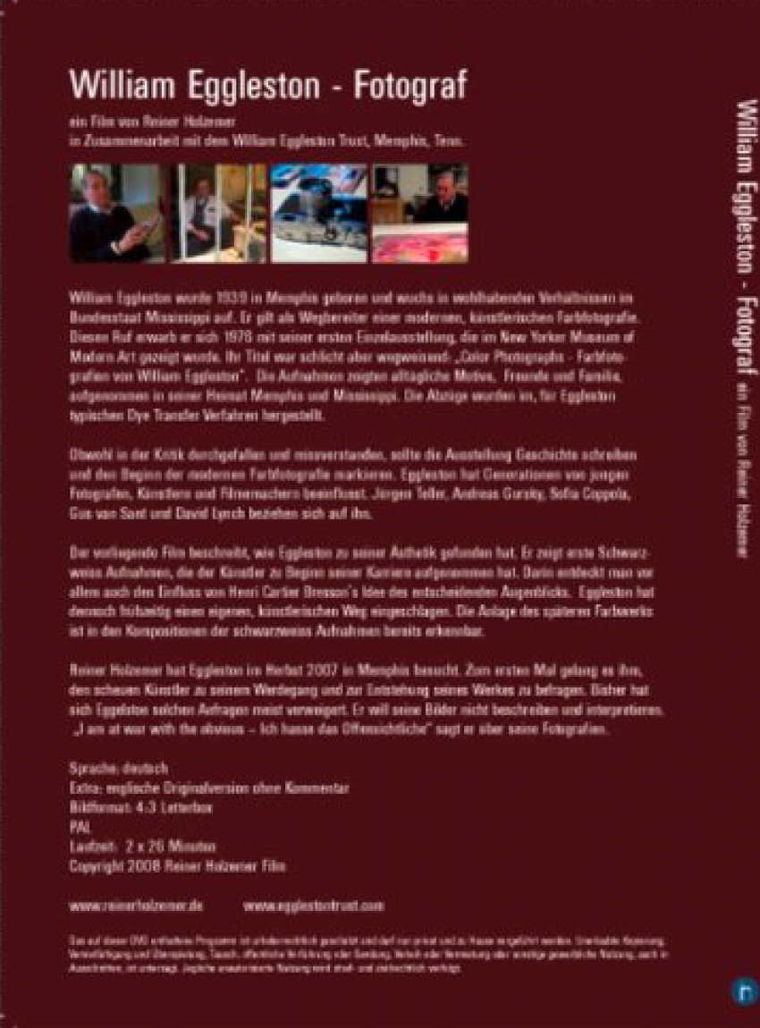 William Eggleston - urodzony w 1939 roku, arystokrata rodem z Missisipi, miłośnik broni, dobrego alkoholu i kobiet, wywrócił świat fotografii do góry nogami, kiedy pewnego dnia zjawił się w MoMa (The Museum of Modern Art, Nowy Jork), z pudłem negatywów i cudem przekonał tę szacowną instytucję do zorganizowania jego pierwszej wystawy - pierwszej, na której wystawiono kolorowe fotografie. Nie był jedynym, który fotografował świat w kolorze ale to Egglestona uznają za odkrywcę artystycznej fotografii kolorowej. Poprzez swoją pracę wpłynął na artystów i twórców filmowych, takich jak David Lynch, Sofia Coppola, Gus van Sant, Dennis Hopper i David Byrne. Zwykle niechętnie komentujący swoją twórczość, w filmie Eggleston opowiada o początkach kariery, poglądach na fotografię oraz narzeka na krytyków sztuki.