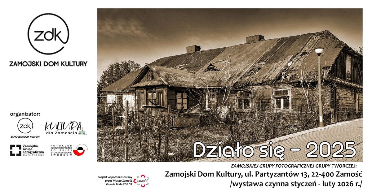 Zamojski Dom Kultury w Zamościu zaprasza 20 stycznia 2026 roku, na wernisaż zbiorowej wystawy fotografii "Działo się 2025" członków Zamojskiej Grupy Fotograficznej - Grupy Twórczej. Wystawa potrwa do 5 marca 2026 roku. Wstęp wolny.
