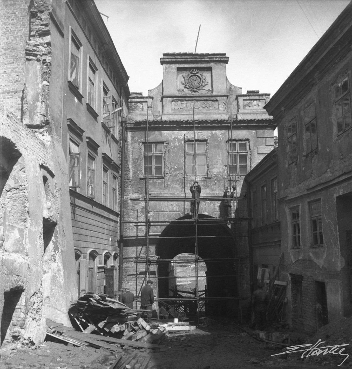 W czasie tych prac, w 1954 roku, Lublin odwiedził Edward Hartwig, który regularnie powracał do swojego rodzinnego miasta. Podczas swojego pobytu uchwycił serię zdjęć dokumentujących przebieg prac remontowych w Lublinie. Fotografie te można podzielić na kilka kategorii tematycznych: prace budowlane na Rynku oraz ulicach Złotej, Grodzkiej i Bramowej; prace w okolicach Zamku Lubelskiego; robotników i artystów przy pracy; porządkowanie lubelskiego Podzamcza oraz widoki okolic zamku po zakończeniu prac, prawdopodobnie wykonane około 22 lipca 1954 roku.