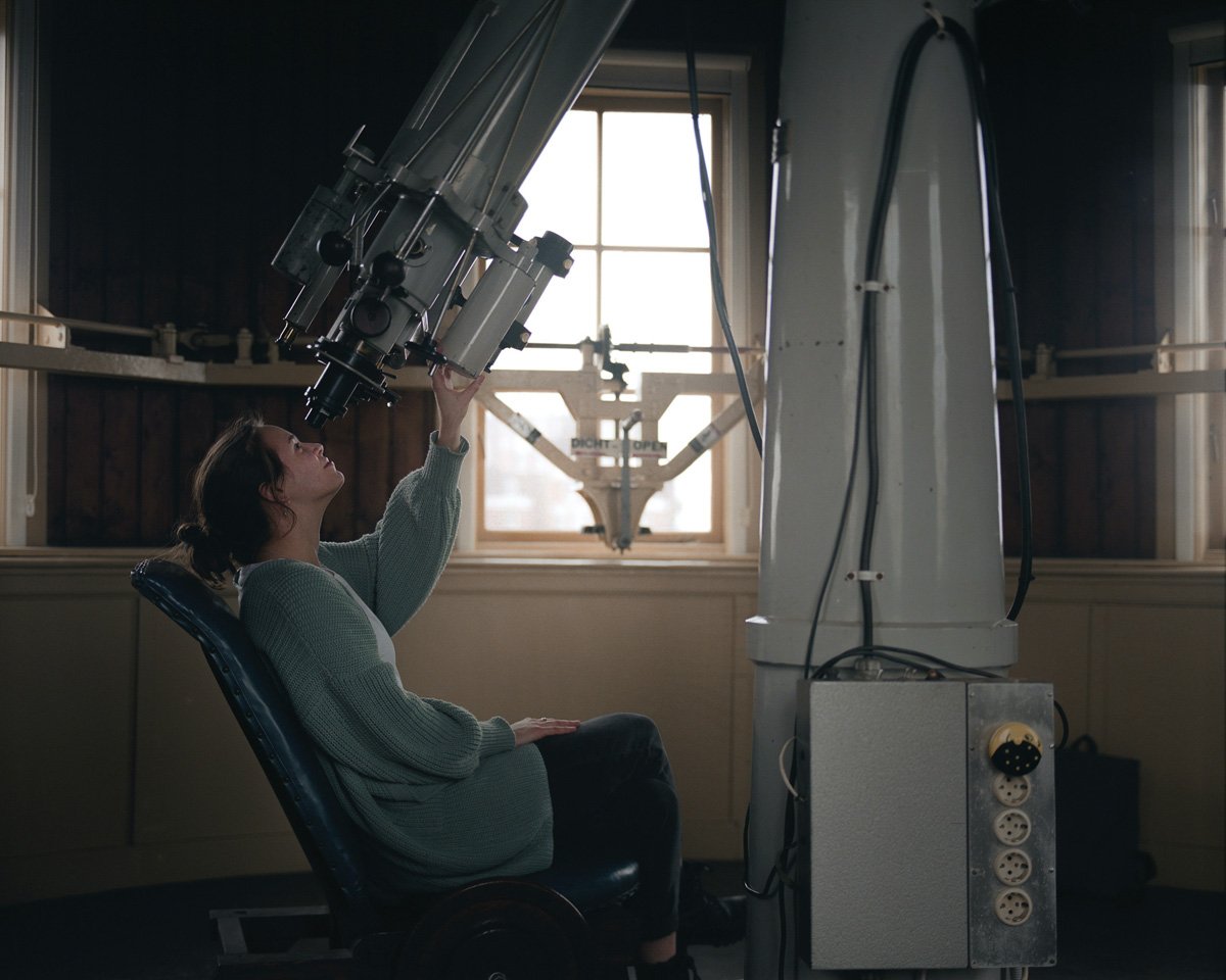 "The blue of the far distance" to długofalowa, artystyczna eksploracja relacji między ludźmi a gwiaździstym niebem w erze wszechobecnego zanieczyszczenia światłem. Pracując nad badaniami, instynktownie podążając z nurtem procesu twórczego, Emilia odwiedziła liczne amatorskie obserwatoria. W jednych niebo stawało się zbyt jasne, by dostrzec cokolwiek, w innych artystka zobaczyła ręcznie zbudowane planetaria skrzętnie ukryte na sufitach prywatnych pokoi, farm i szop.