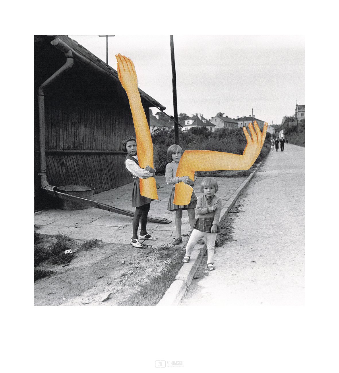 Niepokojące krajobrazy niosące w sobie przeczucie apokalipsy (albo przynajmniej poczucie kruszenia się starego świata) pokazują daremność wielkich kapitalistycznych narracji. Cokolwiek reprezentują głowy starych białych mężczyzn (postęp, produktywność, patriarchat, rozum, chciwą eksploatację ziemi), i tak na tonącym statku będą wyglądały żałośnie. Gesty pojawiające się w kolażach wciągają nas w intymną przestrzeń dotykania i bycia dotykaną, noszenia i bycia noszonym, bycia widzianą i widzenia na wskroś. Tak właśnie – widzenia naprawdę. Nie chodzi o penetrujące spojrzenie uprzedmiotawiającego widza, nawet nie o wymianę spojrzeń. Zamiast tego czujemy, że ich wiedzące oczy widzą nas na wskroś. Bo one wiedzą i rozumieją. Potrafią przejrzeć na wylot zasłony hierarchii i instytucjonalnych autorytetów. I w tej głębokiej mądrości pozostają spokojne, rozbrykane, okrutne, delikatne, i niszczące. Poza dobrem i złem. Niczego nie muszą udowadniać. Mają wywalone, bo wiedzą, że teraz nadeszła ich kolej - a wszystkie gadające głowy powinny stać się publicznością dla ich drobnych gestów prywatnej magii, czułości, troski, subwersji, i unicestwienia starego świata.