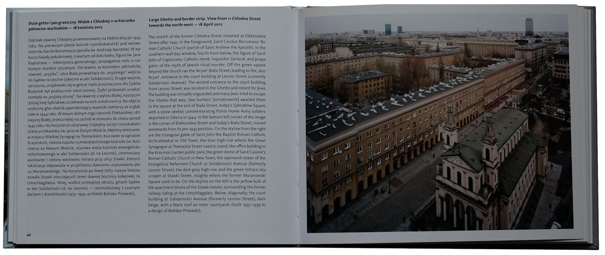 Książkę otwiera tekst Gabrieli Świtek stanowiący nie tylko opis samego projektu i tłumaczący jego założenia, ale będący rozważaniem o kształtowaniu się współczesnych przestrzeni w historycznych miejscach, na gruzach obciążonych Historią. Publikację zamyka wywiad Lidii Ostałowskiej z artystami. Jednak sedno katalogu kryje się w reprodukcjach zdjęć prezentowanych na wystawie, wraz z ich szczegółowymi opisami. Dlatego właśnie jest to przede wszystkim książka będąca dokumentem, strażnikiem pamięci.