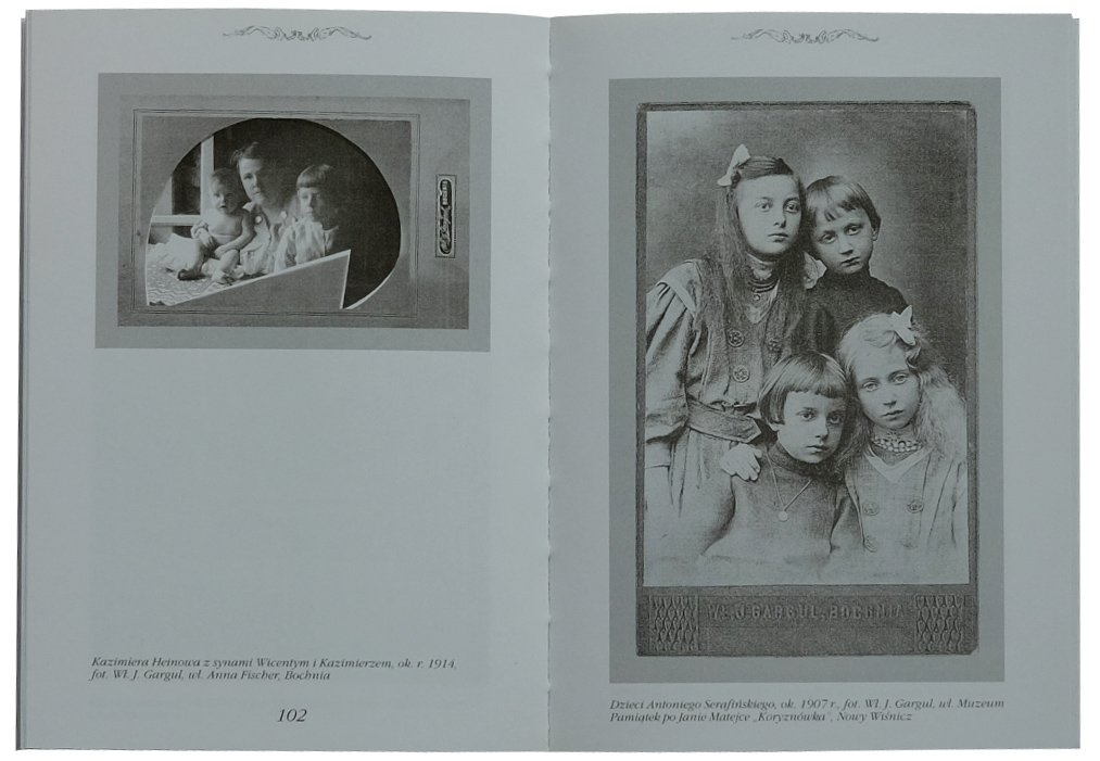 W książce autorka opisuje pionierów fotografii bocheńskiej jak Władysław Nowicki, Józef Zacharski, Feliks Kulikowski, Bronisław Wyspiański, Józef Spičak. Szczególne miejsce zajmuje w dziejach fotografii bocheńskiej działalność rodziny Gargulów, zwłaszcza Władysława Gargula - nie tylko znakomitego fotografa, lecz także autora ciekawych, nowatorskich rozwiązań technicznych w zakresie fotografii. Autorka nie zapomina o jego żonie Janinie, która po przeprowadzce męża do Wieliczki prowadziła z determinacją atelier w Bochni oraz ich synu, Kazimierzu Gargulu. Fragment opracowania poświęciła malarce Klementynie Mien, która w 1934 roku otworzyła w Bochni zakład fotograficzny przy ul. Kazimierza Wielkiego. Przedstawia w końcu i tych, którzy działali na obrzeżach fotografii profesjonalnej, jak i fotografów z innych ośrodków - działających, bardziej lub mniej, okazjonalnie na terenie Bochni, np. Leona Majewskiego z Tarnowa i innych.