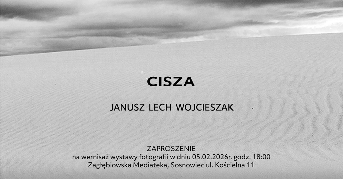 Miejska Biblioteka Publiczna w Sosnowcu zaprasza 5 lutego 2026 roku, o godz. 18.00 do Galerii Zagłębiowskiej Mediateki na wernisaż wystawy fotografii Janusza Lecha Wojcieszaka "Cisza". Wystawę można oglądać do 28 marca w 2026 roku. Wstęp wolny.