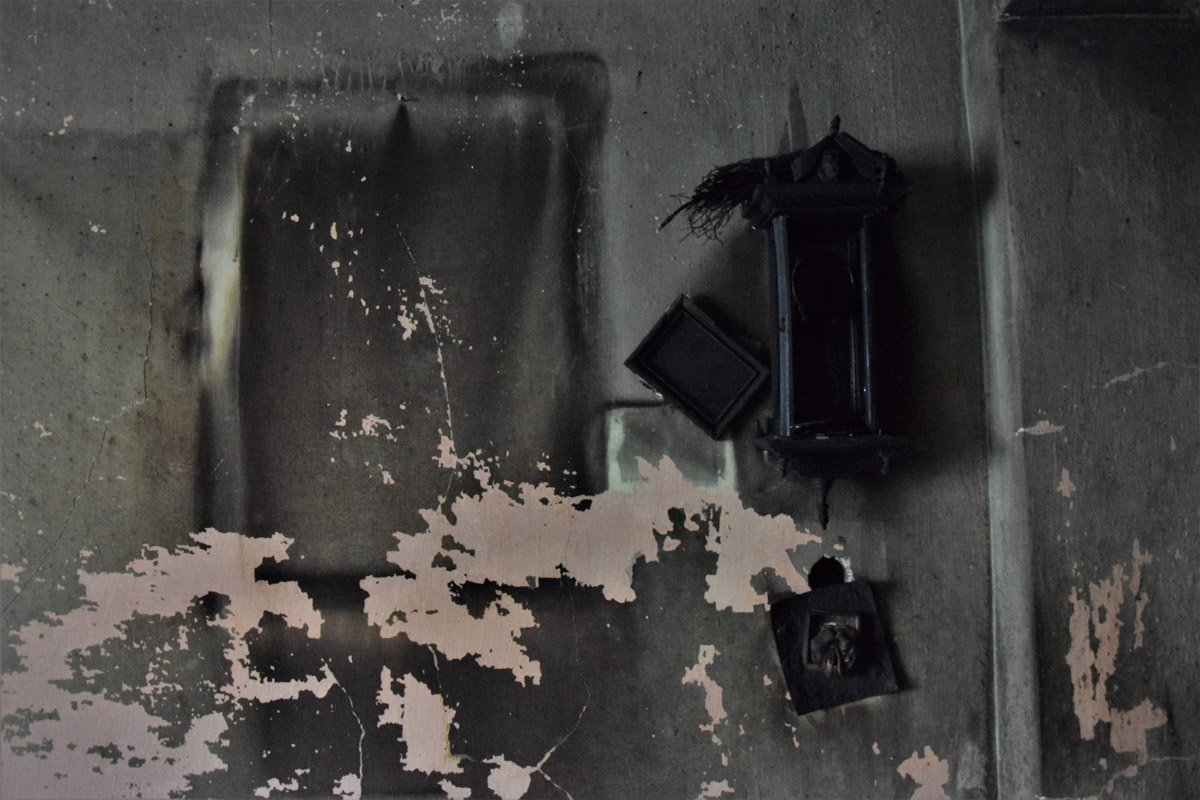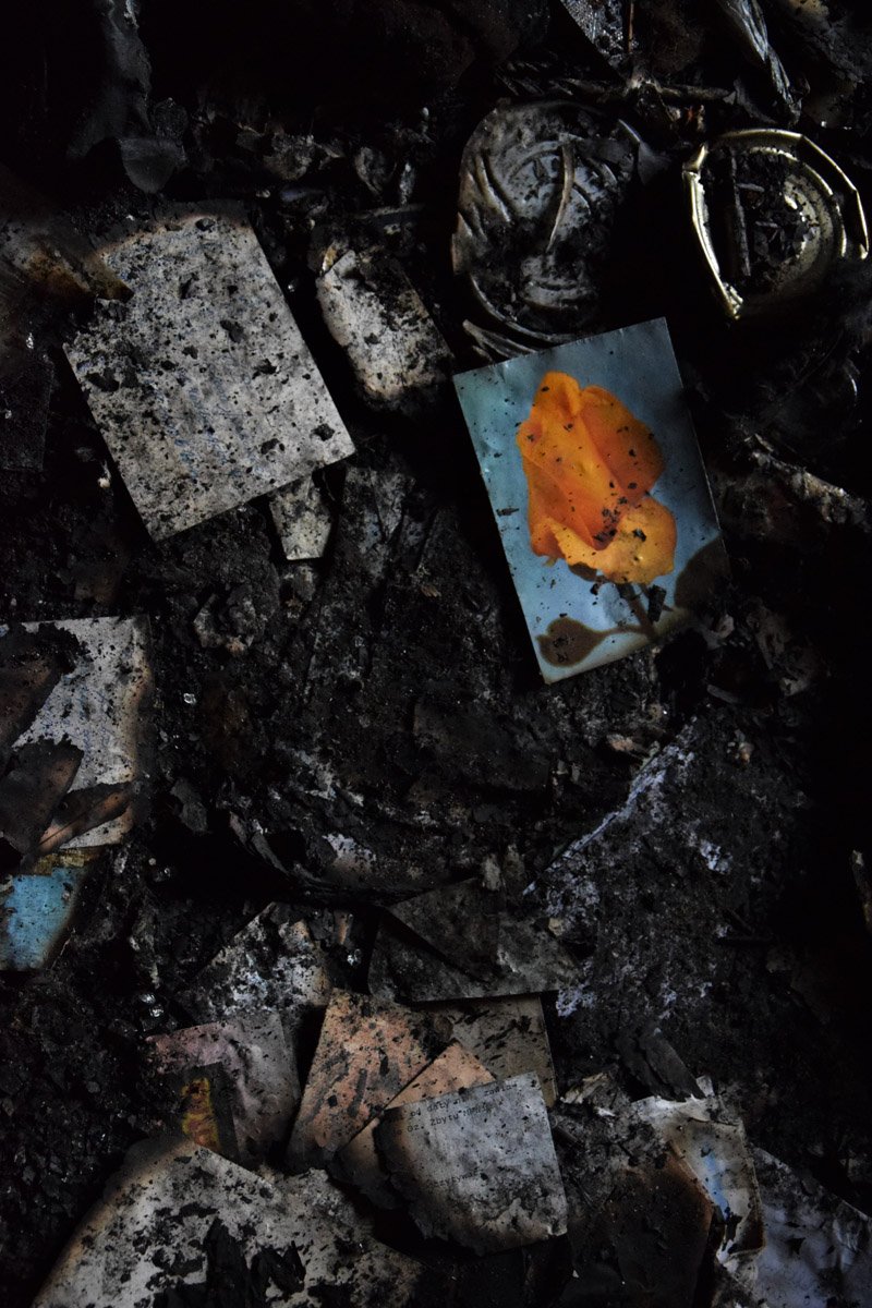Pożoga ta swego rodzaju klęska to jednocześnie zakończenie jakiegoś etapu. Jedne wydarzenia prowokują kolejne. Na początku jest rozpacz lecz nawet na zgliszczach może zakiełkować życie. Czy ta klęska jest tylko końcem? A może pozwala otworzyć szeroko oczy i spojrzeć wokół inaczej. Dojrzeć to czego nie widziało się wcześniej. Nic nie dzieje się bez przyczyny. Fotografia pozwala uchwycić i utrwalić moment, ale życie toczy się dalej. I tylko od nas zależy jak.