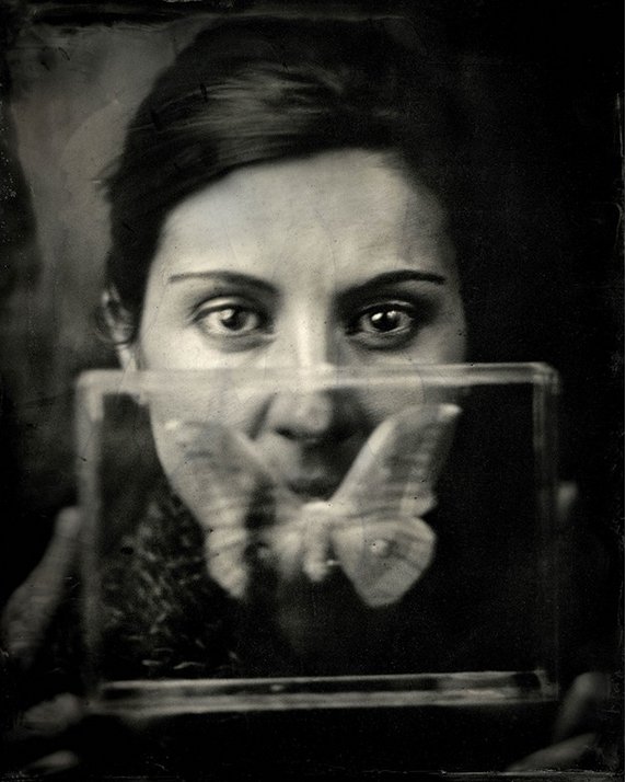 Korzystam współcześnie ze skomplikowanej XIX wiecznej techniki mokrego kolodionu. Receptura chemiczna oraz długi czas naświetlania sprawiają, że staję się bardziej alchemikiem i poetą opisującym ulotne wrażenia, niż reporterem rejestrującym rzeczywistość. Każdy portret to synergia emocji, wrażliwości i doświadczeń. Powstaje unikatowy obraz mieniący się w specyficzny metaliczny sposób, a portret staje się lustrem duszy.