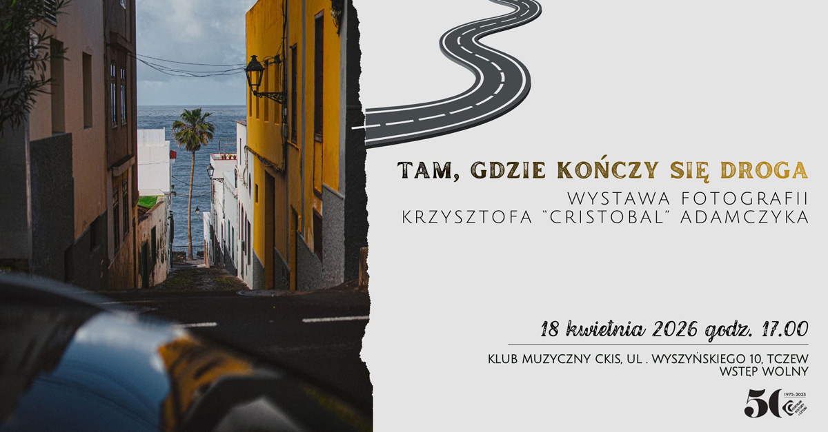 Centrum Kultury i Sztuki w Tczewie zaprasza 18 kwietnia 2026 roku, o godz. 17.00 do Klubu Muzycznego na wernisaż wystawy fotografii Krzysztofa Adamczyka "Tam, gdzie kończy się droga". Wstęp wolny.