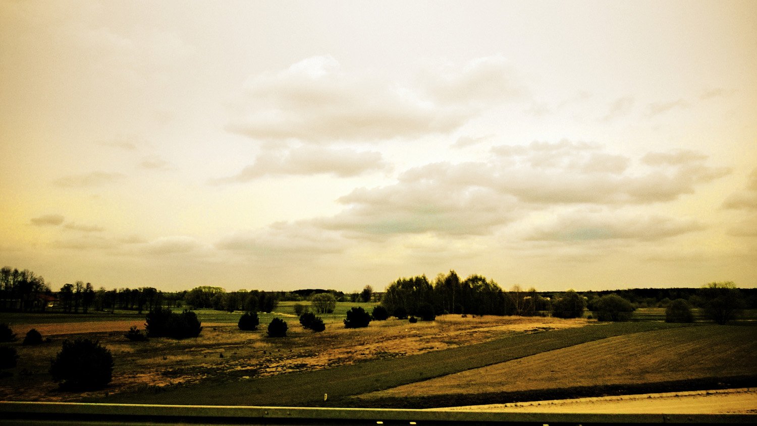 Rejestracja fotograficzna pejzażu dokonana z wnętrza jadącego pojazdu, niedoskonałym narzędziem jakim jest aparat w telefonie, gdzie migawka nie nadąża rejestrować przesuwającego się za oknem obrazu (wciąż tego typu aparaty pozostają w „tyle” za tradycyjnym sprzętem fotograficznym), przez zakurzone lub obłocone szyby, zaparowane od środka lub ociekające deszczem… Jednak fotografia (w tym pejzażowa) nie zawsze musi być doskonała technicznie, nie zawsze musi być ostra, wyraźna i czytelna – to zależy od intencji autora, od przesłania, jakie zawiera w sobie obraz fotograficzny.