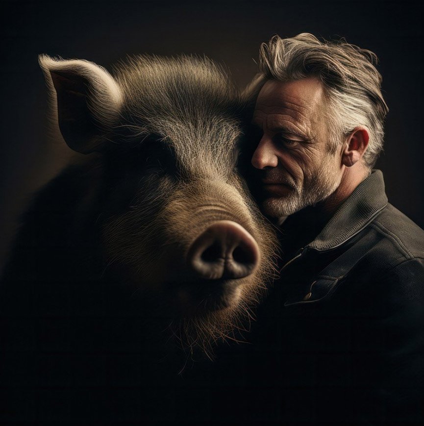 Projekt "Jak blisko" to seria portretów symbiotycznie złączonych ze sobą par ludzi i zwierząt. Te fotografie przyszłości powstały przy użyciu sztucznej inteligencji. Przedstawiają wizję, która wciąż jest utopią, choć może już niebawem to właśnie sztuczna inteligencja całkowicie przedefiniuje obowiązującą wiedzę i paradygmaty opisujące relacje człowieka z naturą.