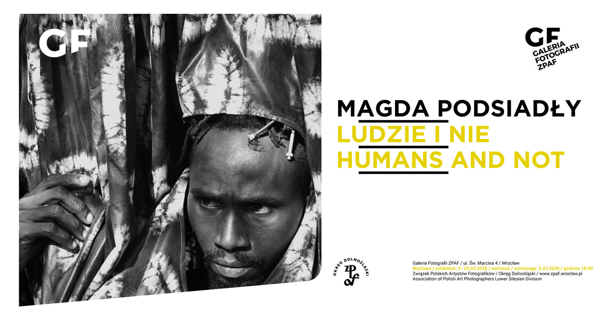 Galeria Fotografii ZPAF we Wrocławiu zaprasza 5 marca 2026 roku, o godz. 18.00 na wernisaż wystawy fotografii Magdy Podsiadły "Ludzie i nie". Wystawę można oglądać do 29 marca 2026 roku. Wstęp wolny.