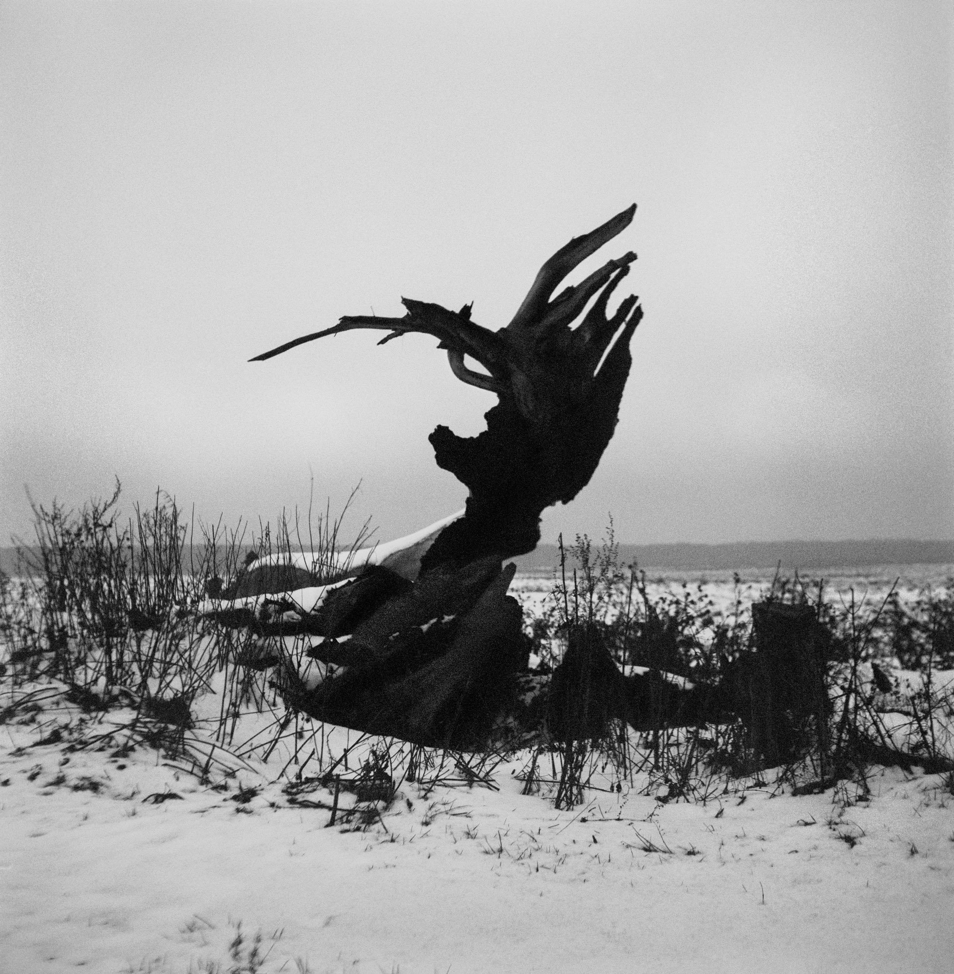 "Maksymilian zdecydował się na czarno-biały film i analogowy, stary średnioformatowy aparat, podobny do tych, którymi dokumentowano Rzeź Wołyńską. Fotografował miejsca, w których kilkadziesiąt lat temu były polskie wsie, a w nich domy, szkoły, targi i kościoły. Dziś trudno w tych przestrzeniach o jakikolwiek punkt odniesienia, bo ślady ludzkiej egzystencji wchłonęła natura" - czytamy w informacji prasowej.