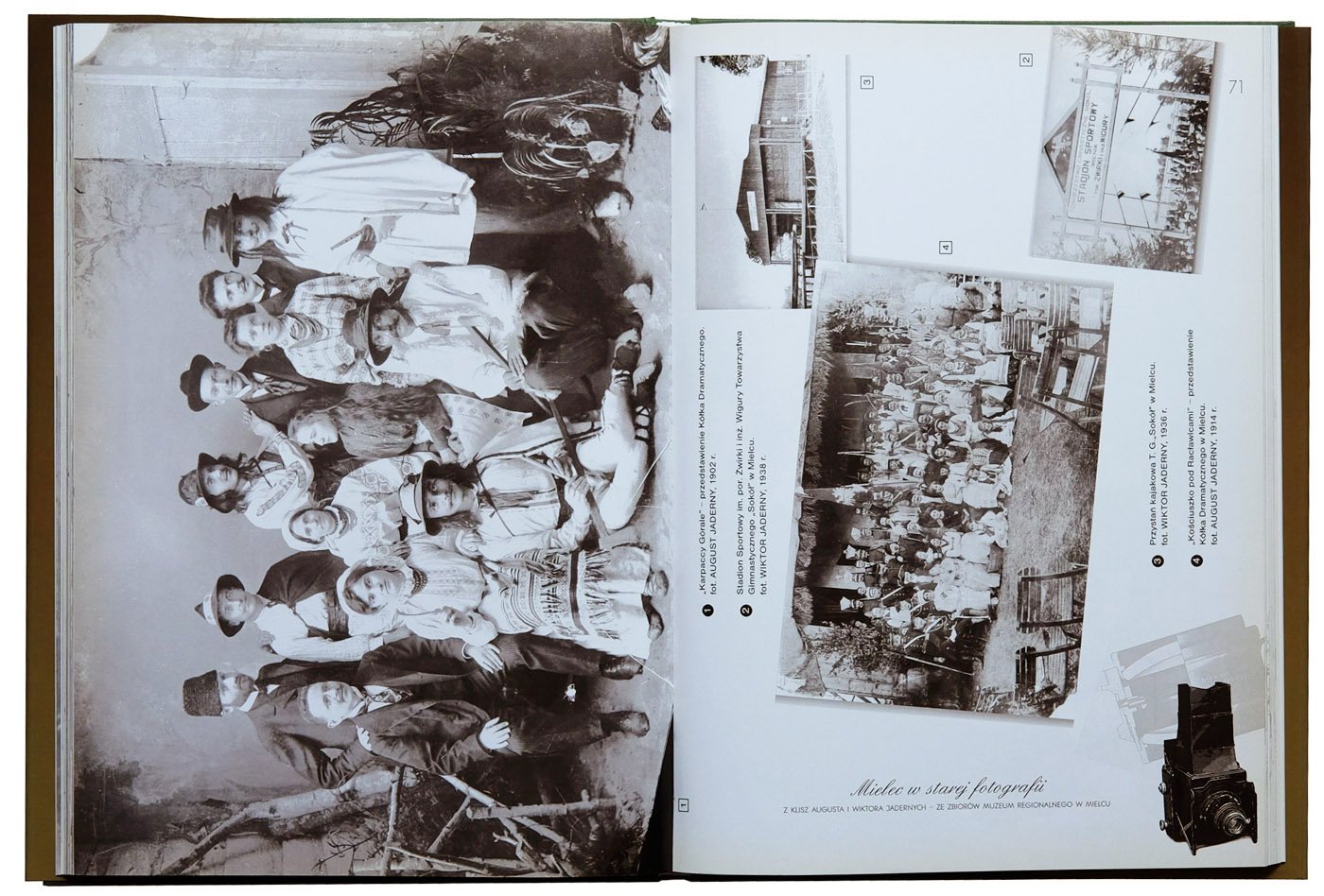 Pomnik minionej epoki. Czyż można znaleźć bardziej trafne określenie dla niepowtarzalnych światłorysów sporządzonych przez Augusta i Wiktora Jadernych, mieleckich fotografów? Zachowane do dziś w mieleckim Muzeum Regionalnym, a prezentowane w wyborze na kartach tego albumu fotografie są tego dowodem. Uchwycone w ułamku sekundy, utrwalone na szklanej kliszy są świadectwem czasu. Zatrzymane w kadrze przez fotografa sceny, nabierają sensu i przemawiają w sposób szczególny w chwilach, gdy na drugą stronę życia odchodzą bliscy, znajomi, kiedy w pamięci zacierają się obrazy, wydarzenia... Właśnie wtedy przenoszą nas w inny świat, wymiar miniony, lecz wciąż żywi. Wymiar, który, jak pisał Marcin Olszyński, pozwoli nam ... "studyować miasta, ulice ożywione ludźmi i powozami, twarze, ubiory, ruchy, zebrania, uroczystości, słowem: życie naszych przodków, którego badanie będzie niewyczerpanem źródłem przyjemności i pożytku" Z takim przesłaniem zapraszam na spotkanie z ludźmi, wydarzeniami, zapraszam do miejsc, gdzie z fotokamera pojawili się niegdyś August i Wiktor Jaderni...
