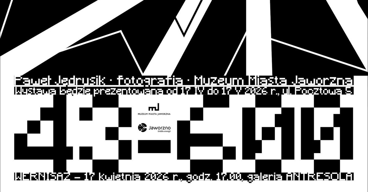 Muzeum Miasta Jaworzna w Jaworznie zaprasza 17 kwietnia 2026 roku, o godz. 17.00 do muzealnej antresoli na wernisaż wystawy fotografii Pawła Jędrusika "43-600". Wystawa potrwa do 17 maja 2026 roku. Wstęp wolny.