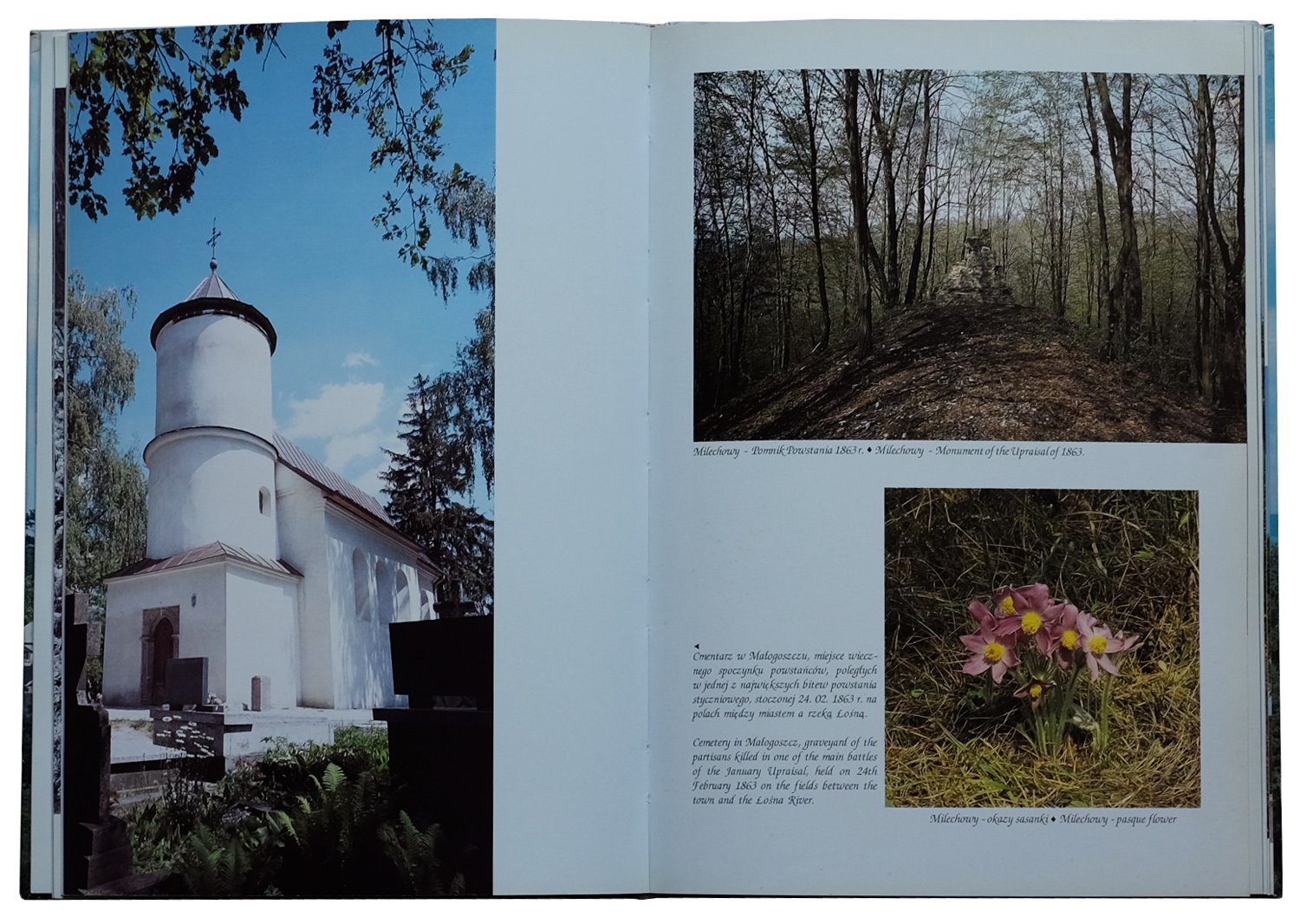 Tytuł "Świętokrzyskie krajobrazy" wymaga krótkiego komentarza, i to dotyczącego obu użytych w nim pojęć. Pojęcie krajobraz rozumieć tu będziemy szeroko, nie tylko więc jako pejzaż naturalny, jak i wszystko to, co w krajobraz wpisała przez wieki działalność ludzkich rąk i ludzkich umysłów. Następna sprawa: świętokrzyskie. Ten zwłaszcza termin może budzić nieporozumienia. Wproponowanym przez nas ujęciu oznacza on terenu województwa świętokrzyskiego. A więc Góry świętokrzyskie także, ale nie wylącznie. Ostatnia reforma administracyjna kraju, stosując nazwę "świętokrzyskie" do całego województwa, rozciągnęła to pojęcie na dwa co najmniej odmienne bardzo obszary: Góry Świętokrzyskie i Ponidzie. Prawdziwy problem jaki stanął przed twórcami tego albumu jest jednakznacznie poważniejszy niż trudności terminologiczne, a wynika z nadmiaru. Piękno i różnorodność natury z jednej strony, z drugiej zaś pradawność i wielowątkowość historii tej ziemi sprawiają, że stworzenie w miarę wszechstronnej panoramy regionu graniczy z niemożnością. Nie taki też cel postawili sobie autorzy. Choć staranie, by zarysować rozmaite aspekty charakterystyki regionu nie było nam obce, akcent pada jednak zdecydowanie na urodę krajobrazu (jak się wyżej rzekło szeroko rozumianego).