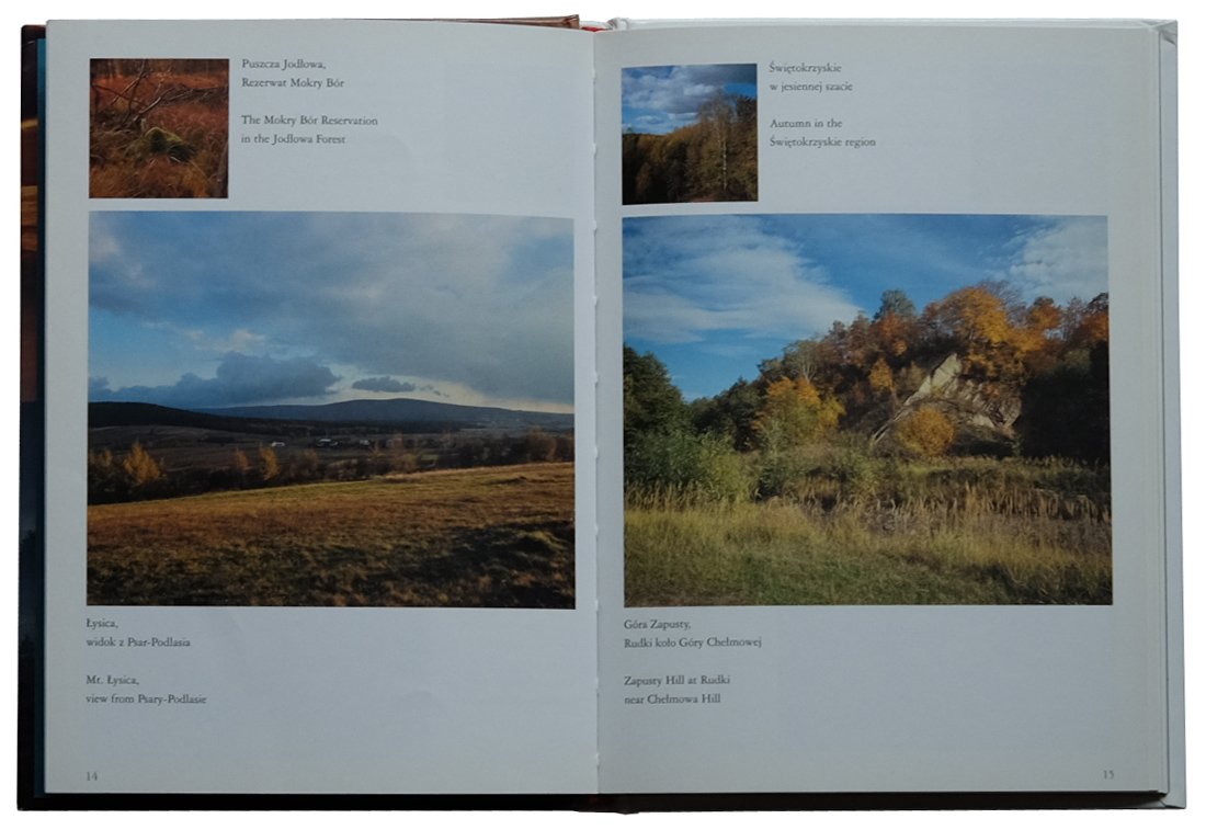 W książce znalazły się fotografie Gór Świętokrzyskich, gdzie szumi Puszcza Jodłowa po łagodne pejzaże Ponidzia, przez Kielce, Sandomierz, Opatów, Wiślicę, z Traktem Królewskim, z biegiem Wisły, wykonane wśród pól i wzgórz przez Pawła Pierścińskiego.