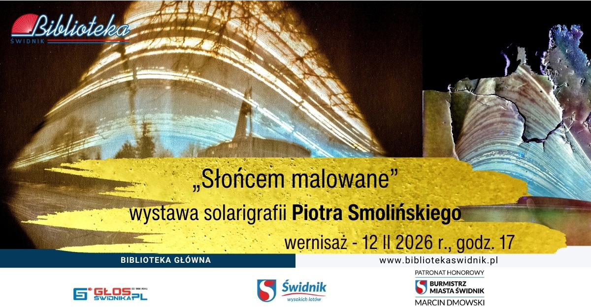 Miejsko-Powiatowa Biblioteka Publiczna w Świdniku, zaprasza 12 lutego 2026 roku, o godz. 17.00 do galerii na wernisaż wystawy fotografii Piotra Smolińskiego "Słońcem malowane". Wystawę można oglądać do 3 marca 2026 roku. Wstęp wolny.