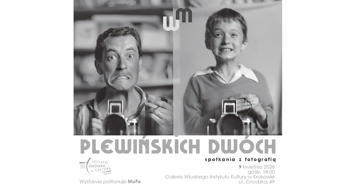 Włoski Instytut Kultury w Krakowie zaprasza 9 kwietnia 2026 roku, o godz. 18.00 do Galerii WIK wystawę fotografii "Plewińskich Dwóch". Wusyawa zosrała zorganizowana pod patronatem MuFo – Muzeum Fotografii w Krakowie – wystawa jest poświęcona twórczości Wojciecha i Macieja Plewińskich. Wystawa potrwa do 30 kwietnia 2026 roku.