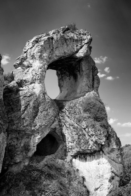 "Jura opowieści" to zbiór kilku czarno-białych zestawów zdjęć opowiadających o Jurze, skałach i ich relacjach z otaczającym je światem. Jest to efekt mojego zauroczenia tym miejscem. Wapienne skały Jury to pozostałości życia i osadów z dna morza sprzed ponad 150 milionów lat. Dostojne, potężne, mistyczne skały, które koegzystują z otaczającym je światem i życiem toczącym się wokół nich.