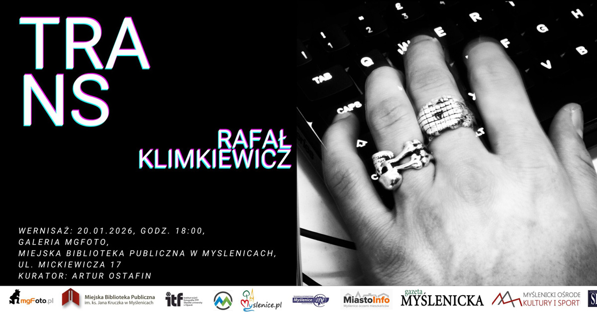 Miejska Biblioteka Publiczna w Myślenicach zaprasza 20 stycznia 2026 roku, o godz. 18.00 do Galerii MgFoto na wystawę fotografii Rafała Klimkiewicza "Trans". Wstęp wolny.