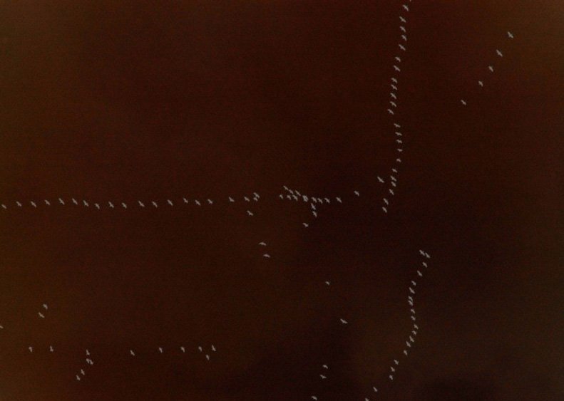 Rozpędzony czas, niby ciągle taki sam, bo w końcu sekunda ciągle jest sekundą, godzina godziną, doba dobą, a jednak pozostaje wrażenie, że w jednostce czasu mieści się coraz więcej zdarzeń. To wyraźnie odczuwalny znak współczesności. Czy poprzednie pokolenia też miały takie wrażenia dotyczące swojego czasu? Niewykluczone. Czy kiedyś nastąpi spowolnienie? Z tego nieustannego pośpiechu zaczynamy się gubić, męczyć, nie dawać rady, bo w jednej minucie ciągle jest tylko sześćdziesiąt sekund. Ten pęd, wypełniany mnóstwem czynności, zdarzeń, słów, obrazów, ma jeszcze jeden wyróżnik. Ponieważ do tego pędu zmuszają nas nieustannie wchodzące w życie nowości, i to nie tylko te techniczne ale także kulturowe, społeczne, polityczne i obyczajowe, to zaczynamy się zastanawiać czy to dobre czy nie, czy rozwija nas, daje więcej swobody, otwiera na pełne spełnianie się czy też łamie przyjęte normy, ogranicza, burzy wyznawany system wartości. Czy czujemy się częścią tego ciągle i arcyszybko zmieniającego się świata czy też nosiciele nowości uznają nas za postaci z minionego czasu, co najwyżej warte umieszczenie w gabinecie figur woskowych Madame Tussaud? Kolejna nowa sytuacja wyrywa nas ze znanego nam stanu, czujemy niepewność. Co teraz? Czujemy się jak spłoszony ptak. Nowy impuls, zaskoczenie, trzeba szybko zareagować. Podrywamy skrzydła, ale czy damy radę lecieć z tym nowym wiatrem czy też on spowoduje, że opadniemy w dół przygnieceni pod jego naporem. Nie warto poddawać się złym myślom. Moment spłoszenia to trudna chwila ale tylko chwila, a potem następuje uspokojenie i znajdowanie miejsca dla siebie w tym co nowe. I znowu będziemy latać, dopóki starcza nam woli i sił. O tych bardzo różnych spłoszeniach opowiada dwadzieścia troje autorek i autorów pracami, głównie fotograficznymi, jak różnorodnie można odnosić się do wspólnie przyjętego przewodniego hasła wystawy. Niektóre prace przyciągają swoją urodą plastyczną, inne oryginalnym pomysłem, a jeszcze inne niejednoznacznością autorskiej wizji. Ta rozmaitość postaw jest siłą wystawy, czasem uwodzi a czasem drażni, by nakłonić widza do własnych opinii i refleksji.