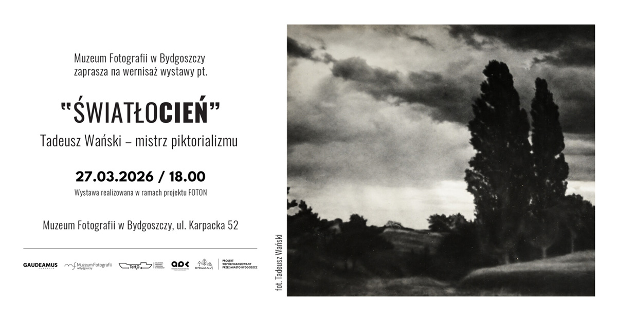 Muzeum Fotografii przy Wyższej Szkole Gospodarki w Bydgoszczy oraz Fundacja Gaudeamus zaprasza 27 marca 2026 roku, o godz. 18.00 na wernisaż wystawy fotografii Tadeusza Wańskiego "Światłocień" - wybitnego fotografika, polskiego piktorialisty.