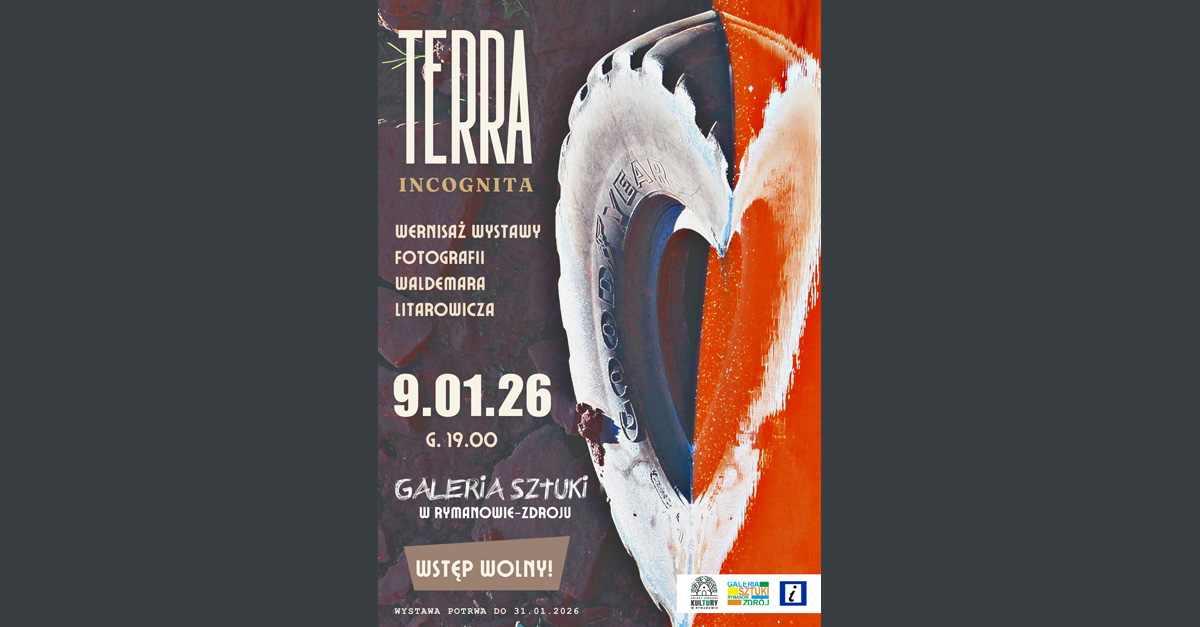 Galeria Sztuki w Rymanowie-Zdroju zaprasza 9 stycznia 2026 roku, o godz. 19.00 na wernisaż wystawy fotografii Waldemara Litarowicza zatytułowaną "Terra incognita". Wystawa potrwa 31 stycznia 2026 roku. Wstęp wolny.