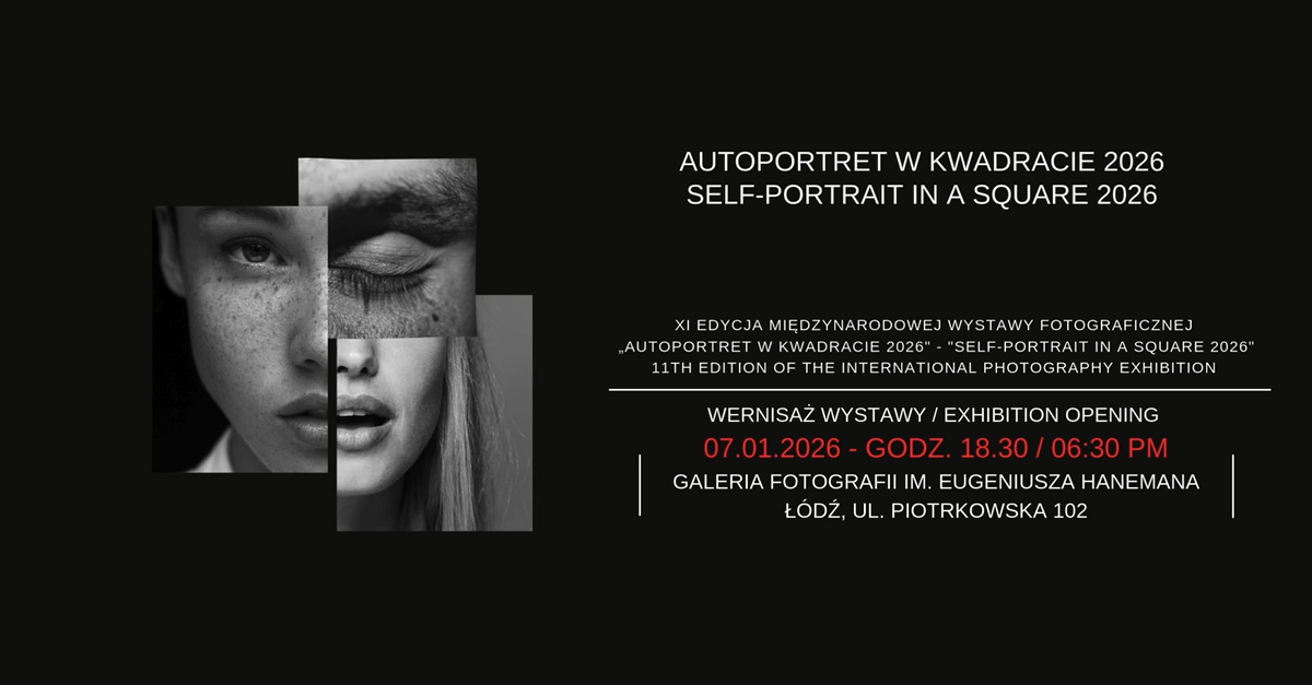 Łódzkie Towarzystwo Fotograficzne zaprasza 7 stycznia 2026 roku, na godz. 18.30 do Galerii Fotografii ŁTF im. Eugeniusza Hanemana w Łodzi na XI edycję Międzynarodowej Otwartej Wystawy Fotografii "Autoportret w Kwadracie / Self-Portrait in a Square".