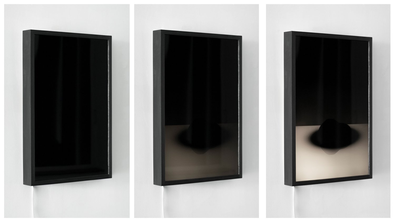 Dominika Sadowska bada fenomen ciemności i jej reprezentację w postaci czerni, podważając tradycyjne koncepcje związane z tym kolorem. Zamiast traktować czerń jako brak koloru, artystka postrzega ją jako punkt, w którym sztuka osiąga swoją pełnię. Wykorzystując lustrzane tafle Sadowska tworzy efektowne i hipnotyzujące obiekty wciągając odbicia zewnętrznego świata w nowe, ambiwalentne przestrzenie.
